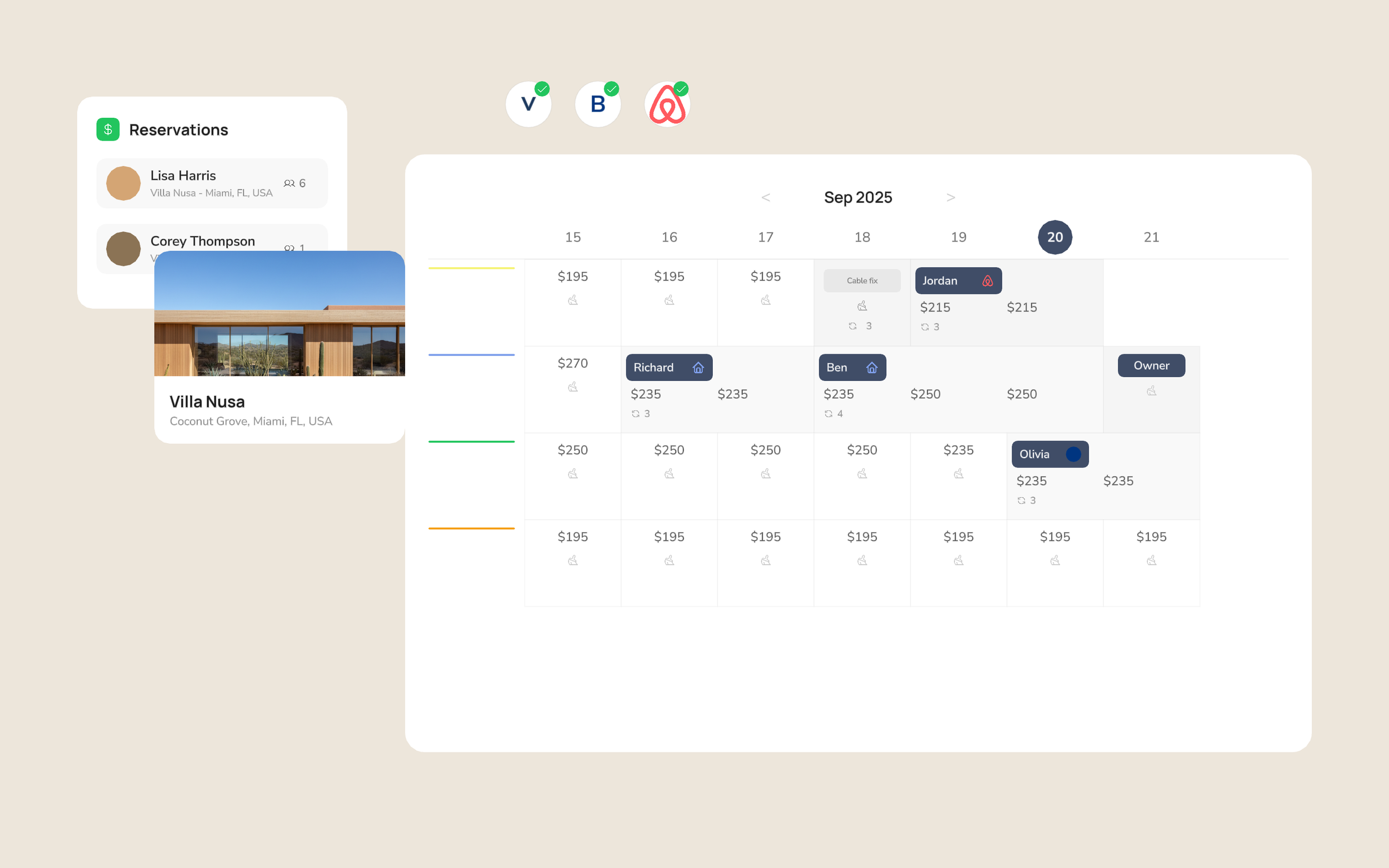 OpenMaid integrates directly with the leading property management systems, automating turnover scheduling and ensuring your vacation rentals are always guest-ready without manual coordination.